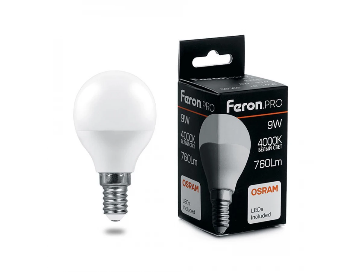 Лампа светодиодная Feron.PRO LB-1409 Шарик E14 9W 4000K OSRAM LED