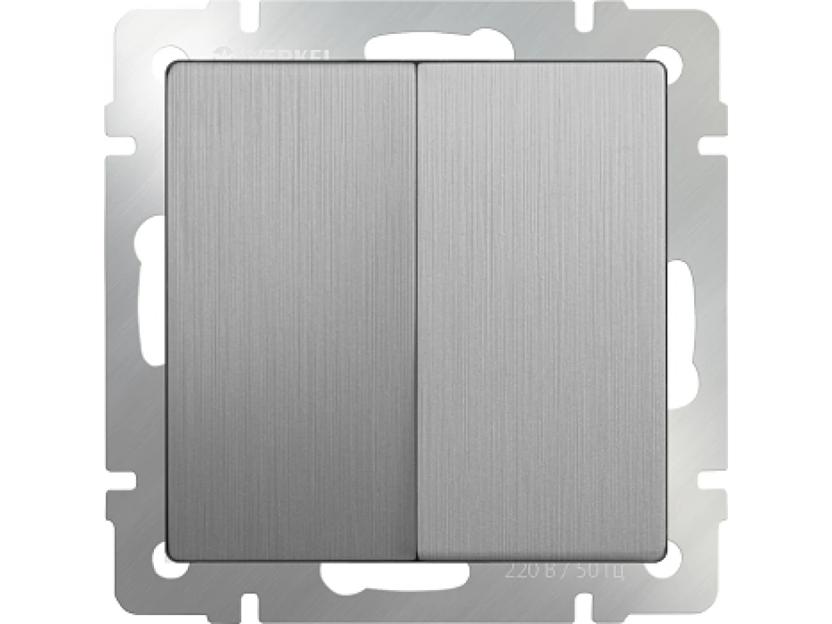 Выключатель двухклавишный (cеребряный рифленый)