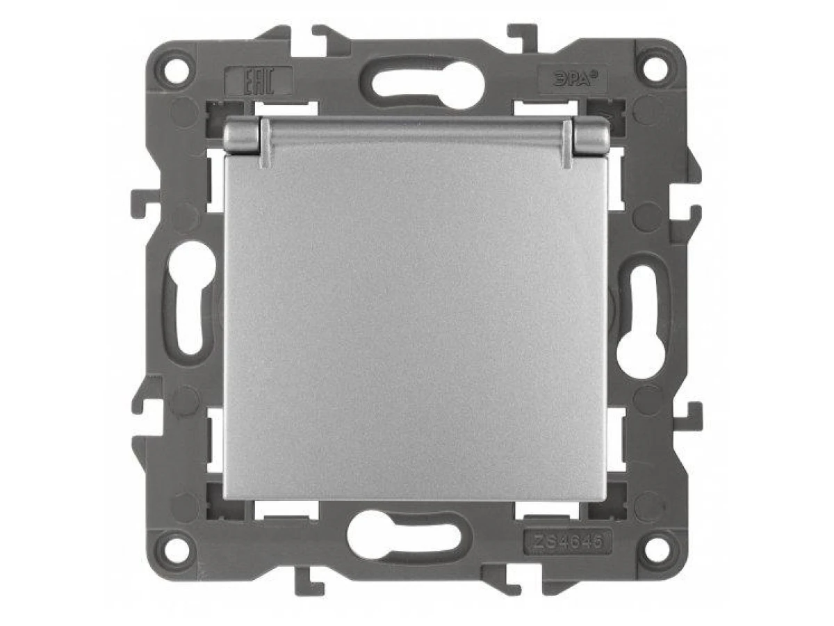 14-2103-03 ЭРА Розетка 2P+E Schuko со шторками с крышкой, 16A-250В, IP20, Эра Elegance, алюминий