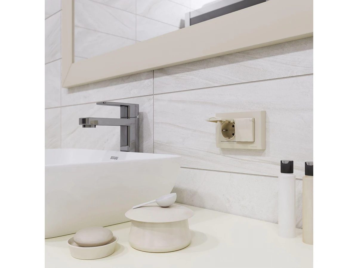 Розетка двойная влагозащищенная с заземлением с защитной крышкой и шторками Werkel слоновая кость W1172203 4690389178078