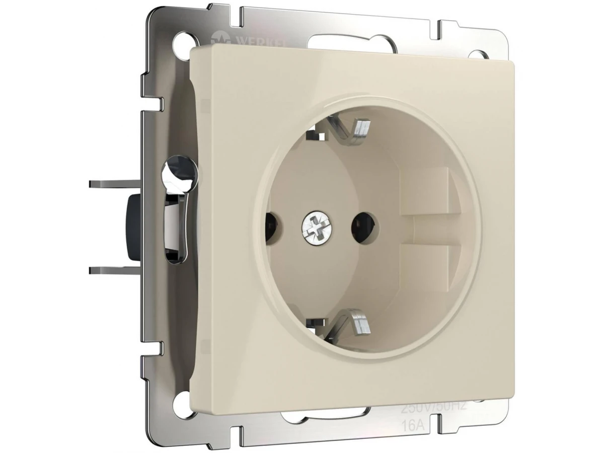 Розетка с заземлением, безвинтовой зажим Werkel слоновая кость W1171303 4690389155772