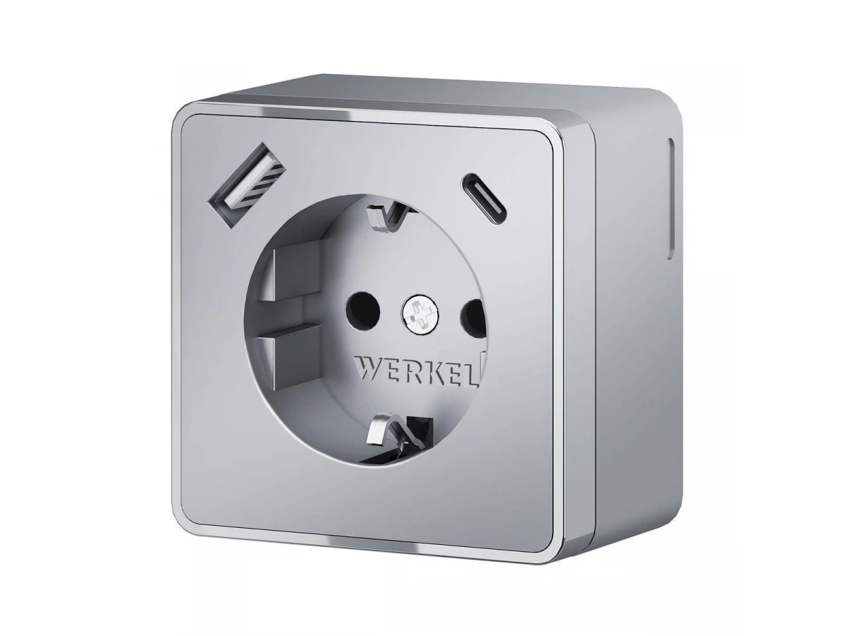 Розетка с заземлением, шторками и USB тип A+C Werkel Gallant серебряный W5071706 4690389179624