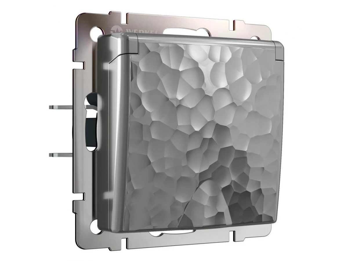 Розетка Werkel Hammer влагозащищенная с заземлением с защитой крышкой и шторками серебряный W1271206 4690389162862