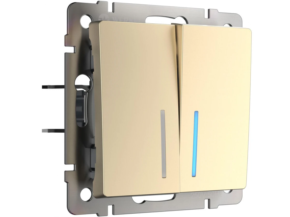 Выключатель двухклавишный с подсветкой Werkel шампань W1120111 4690389157097