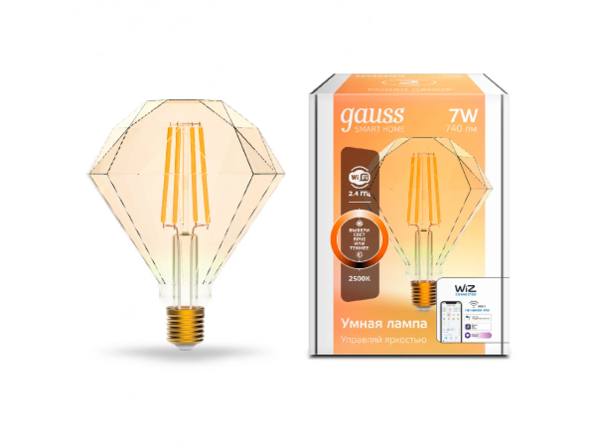 ЛАМПА СВЕТОДИОДНАЯ ФИЛАМЕНТНАЯ GAUSS SMART HOME DIM E27 DIAMOND GOLDEN 7 ВТ 1/40